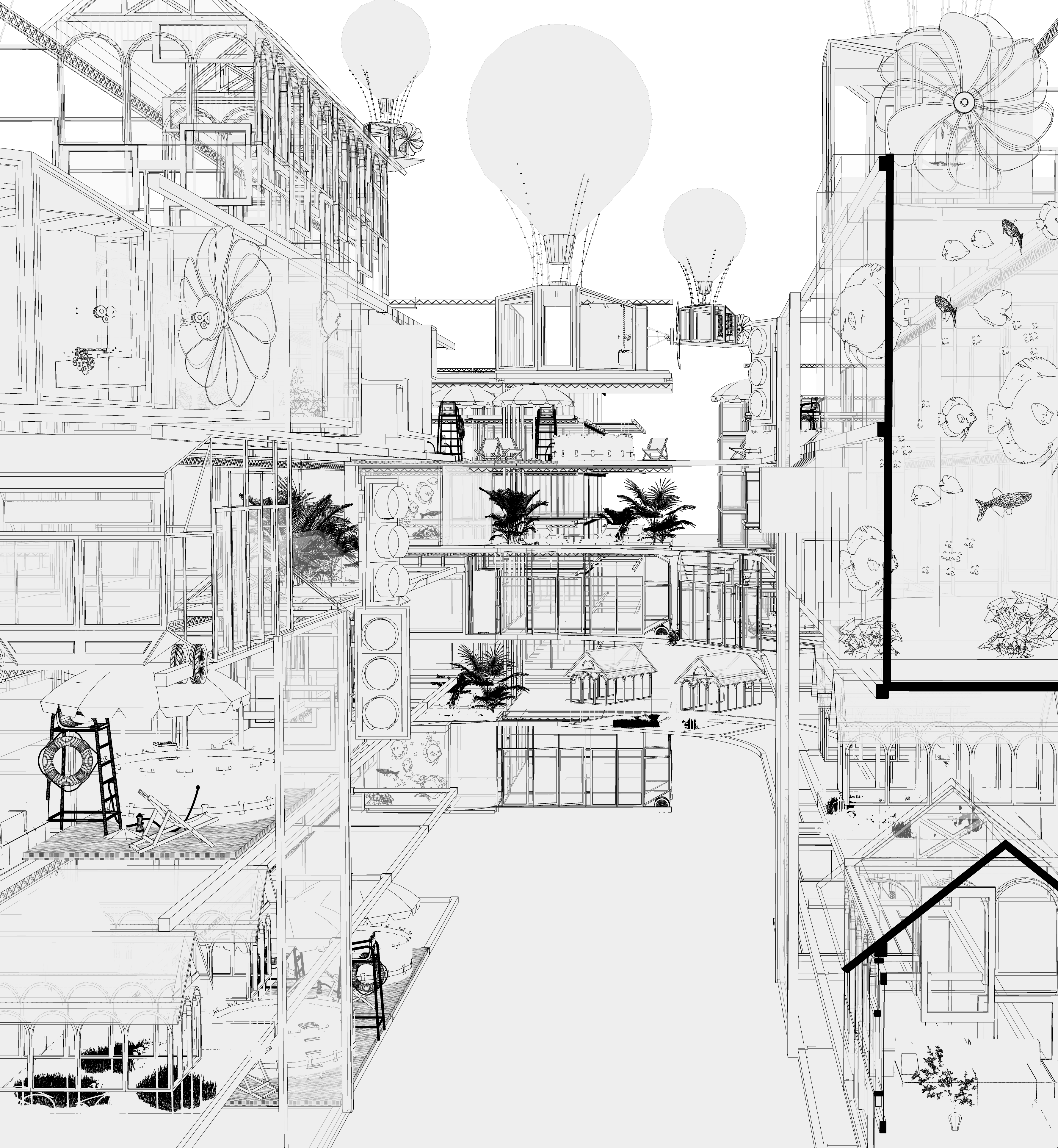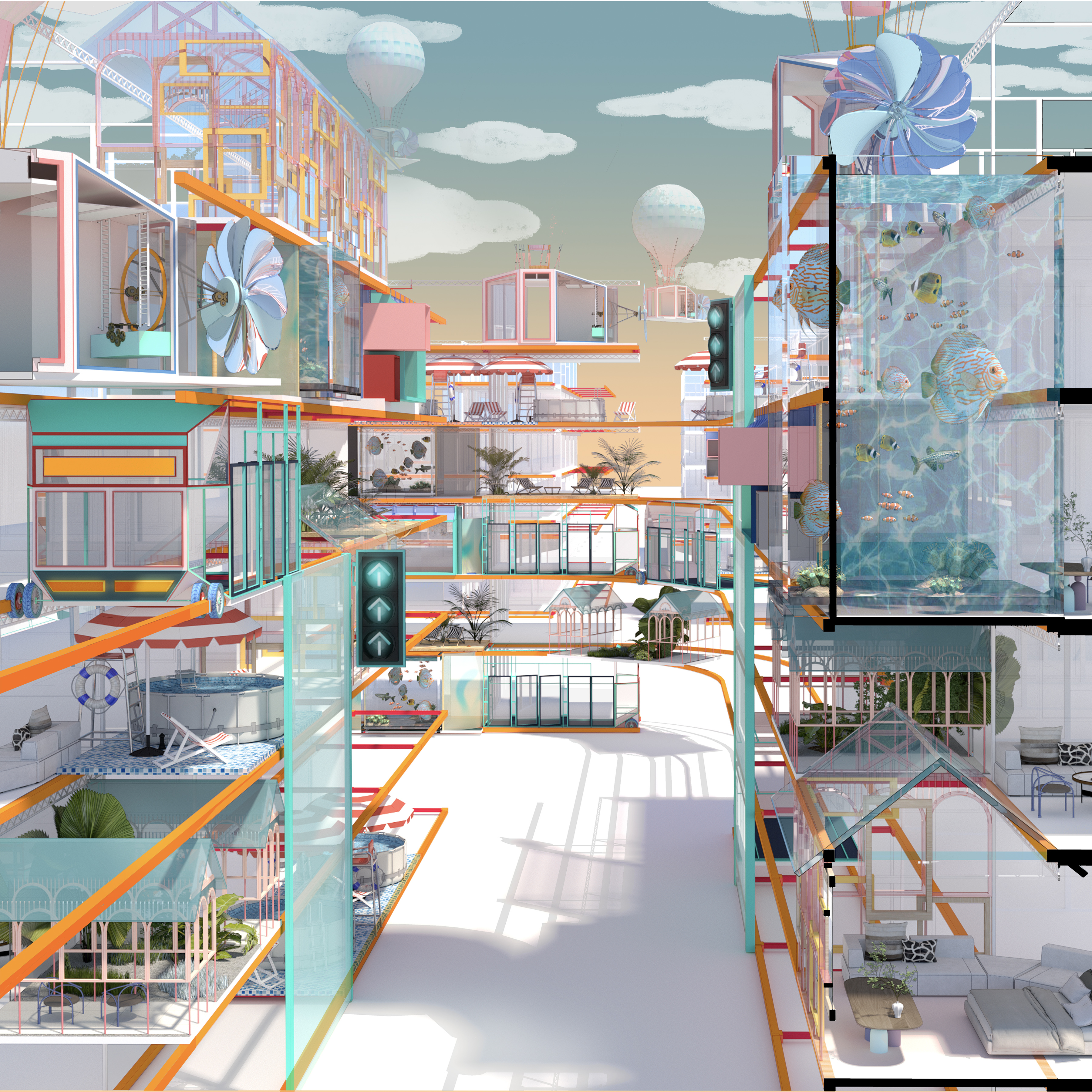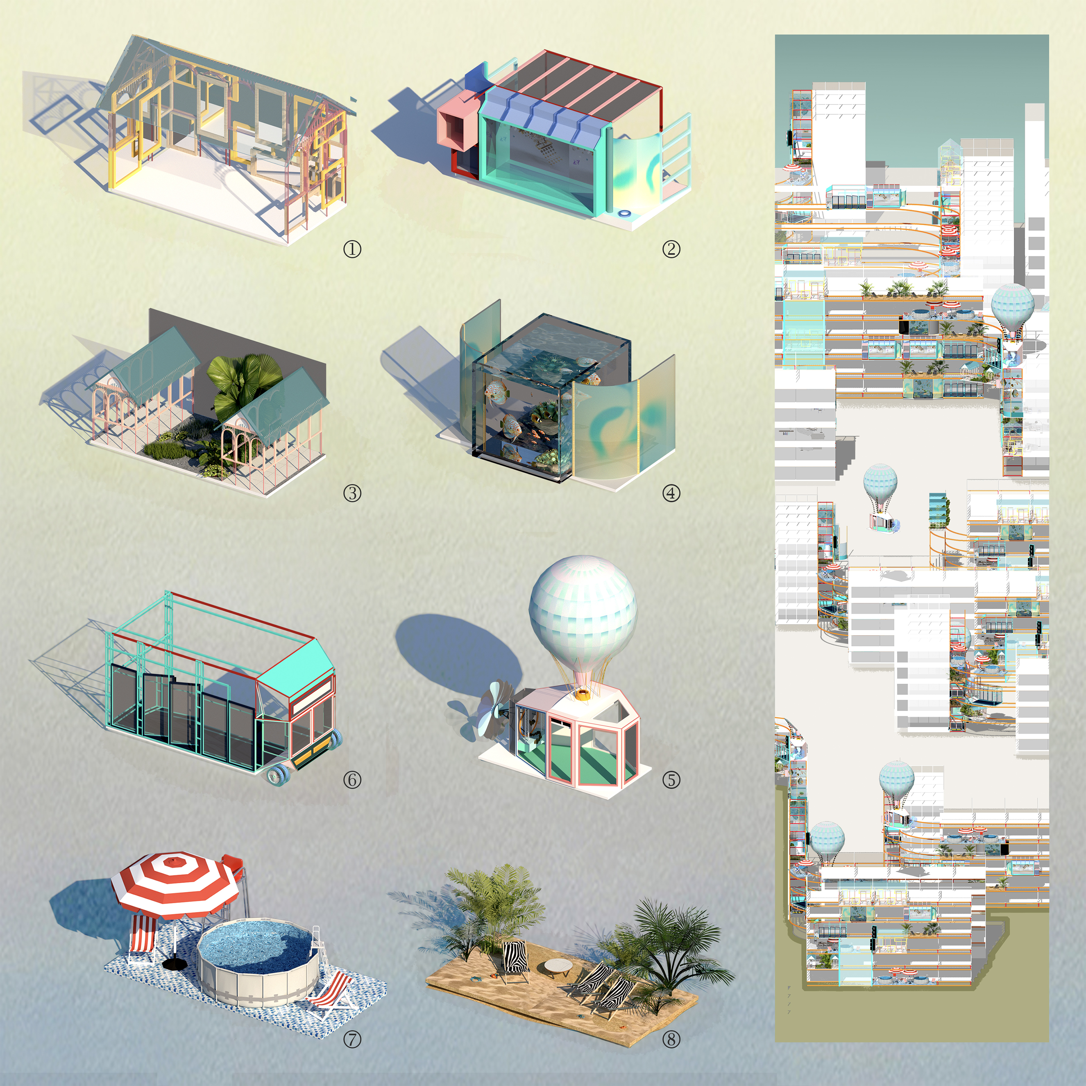 Ever since the emergence of intensive high-rise residential buildings, there has been a distinct separation between indoor and outdoor spaces. Homes have become enclosed entities high above, while the city serves as a distant backdrop beyond the windows. Unlike cities characterized by rich textures, functionalities, and intricate spatial relationships, the layouts of each dwelling within these high-rises are similar, monotonously repetitive, and lacking in diversity.