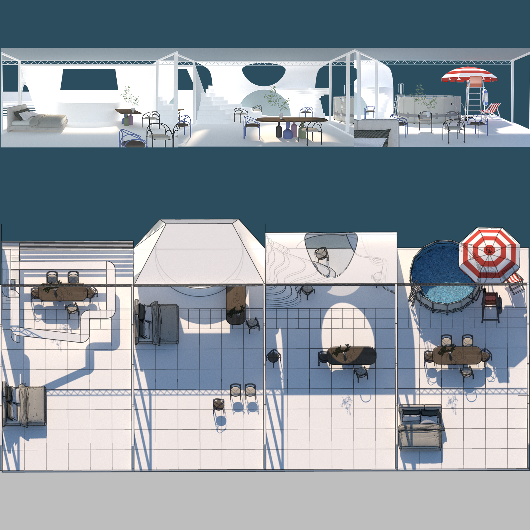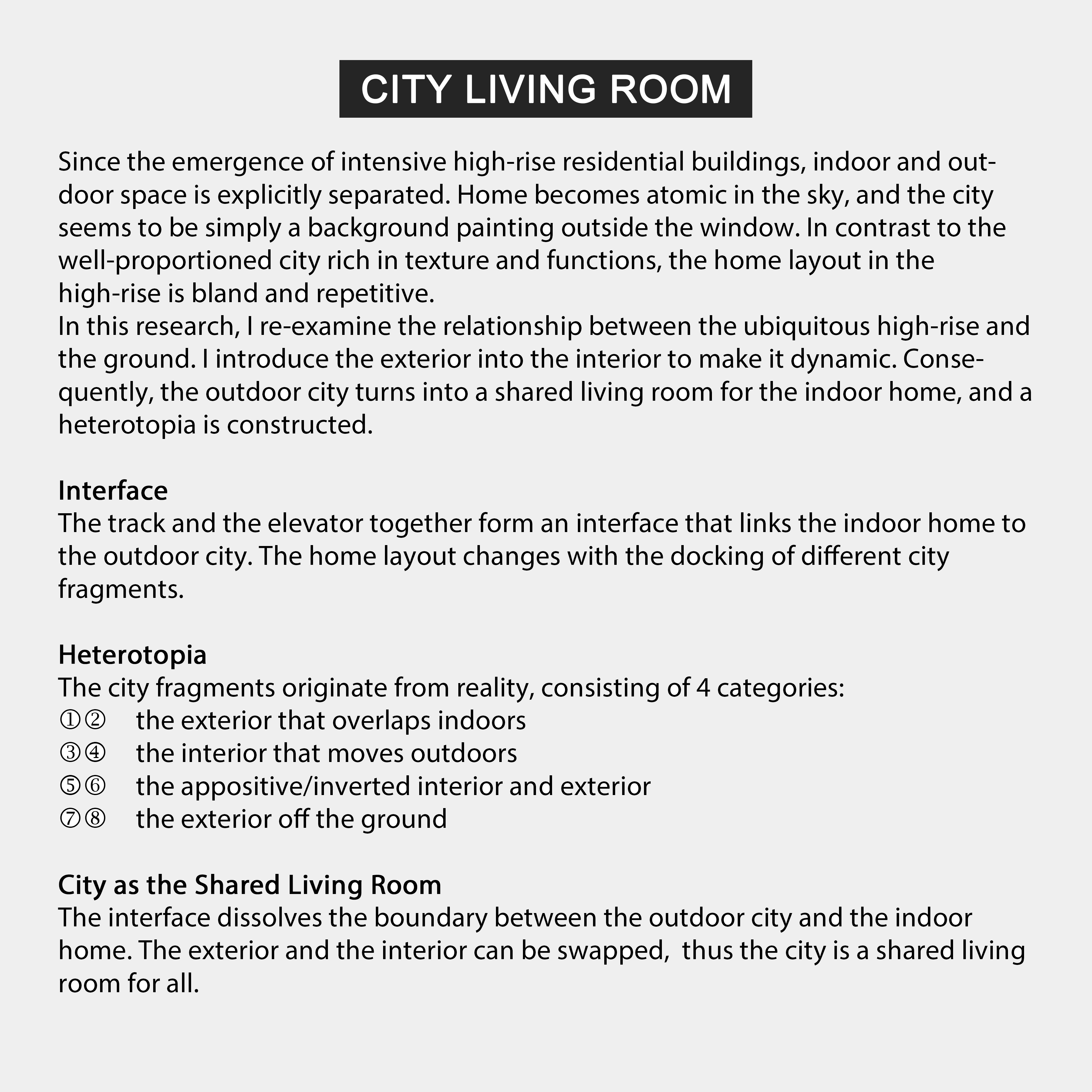 In this small-scale project, the aim is to reexamine the familiar notions of tall buildings and flat ground, homes and cities, and the relationship between indoor and outdoor spaces. The city is introduced as a variable factor into the home, seeking to establish an interdependent relationship between the interior and exterior, making the city a shared living room within the home.