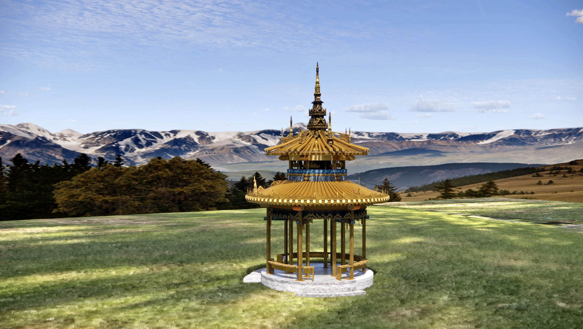 The work envisions a world of cultural fusion, where pavilions carry the integrated characteristics of various civilizations. Participants engage by providing descriptions on a web page, where keywords are captured to extract location information. Through weighted calculations, the corresponding fusion pavilion forms are deduced and presented to participants in the form of postcards or short poems. For example, it can speculate what a pavilion on an unknown island in the Pacific might look like based on the participant's input.